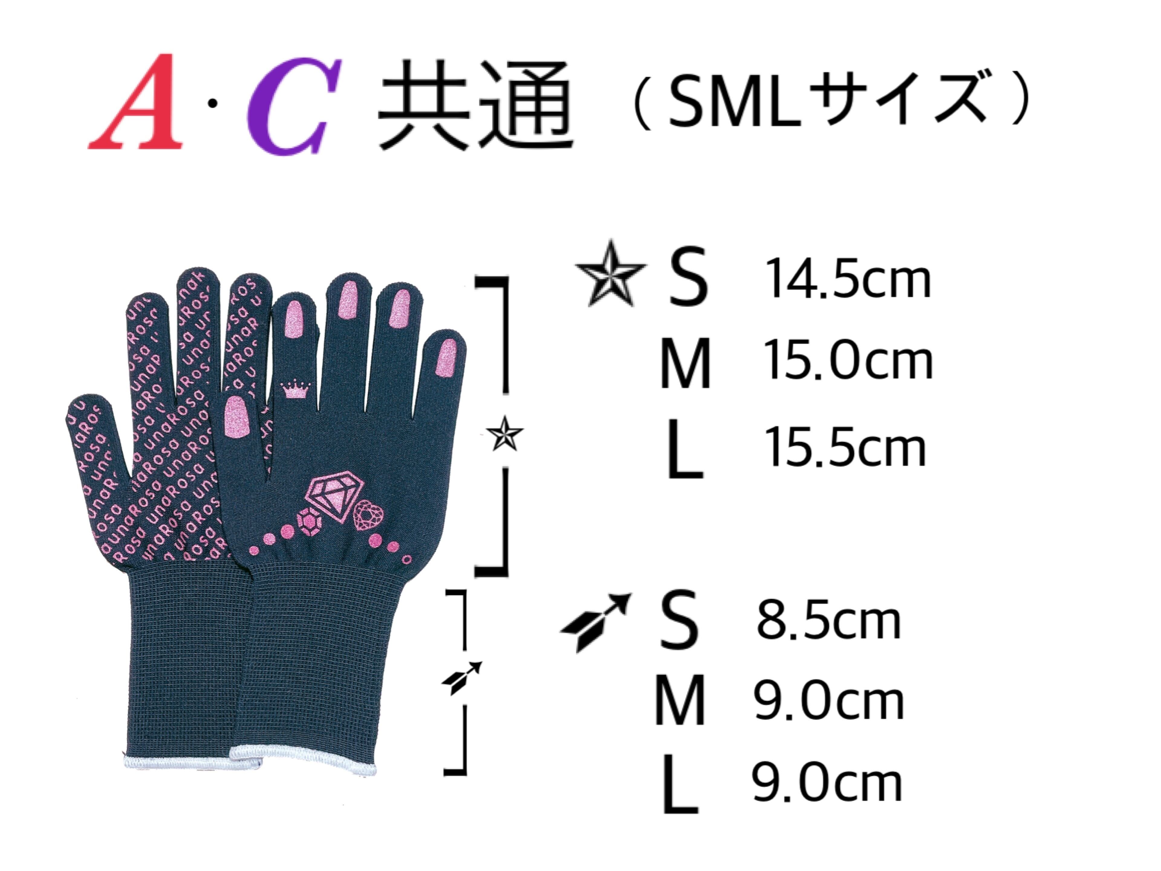 手の平側はブランドロゴの『una Rosa』が滑止めとして入っている。(2枚目)
